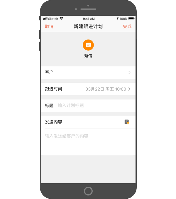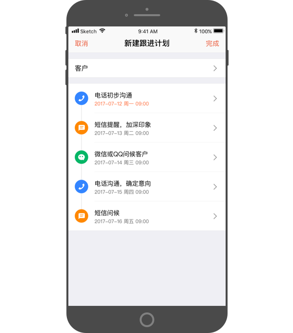 进入"工作 - 客户跟进计划",点击右上角的 "+",新建计划。