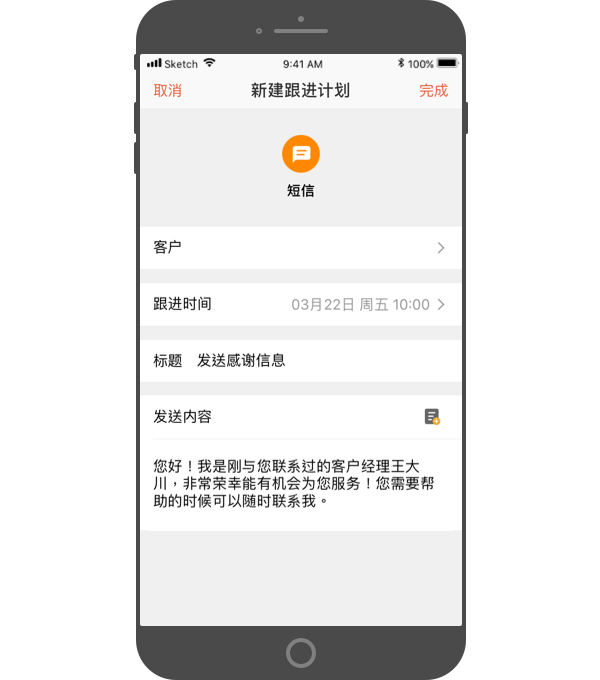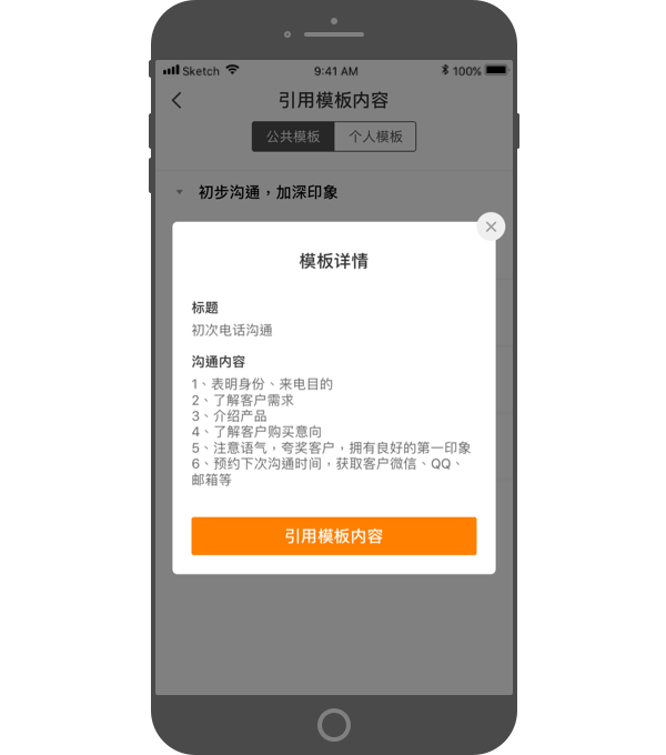 - 沟通内容:模板预设的沟通内容,可自行编辑