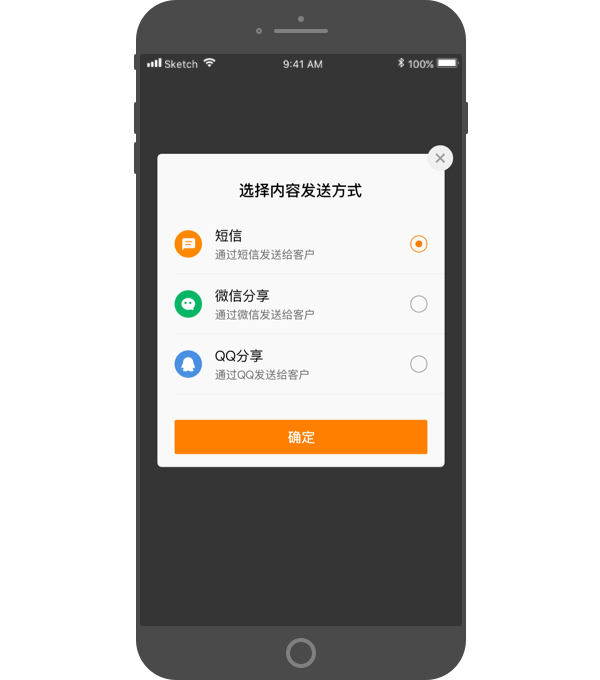 - 发送信息:点击后,员工通过 微信/短信/QQ,发送信息给客户。