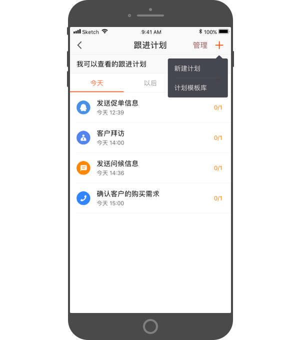 - 跟进计划模板:请参考 “客户跟进计划 - 新建,使用模板”