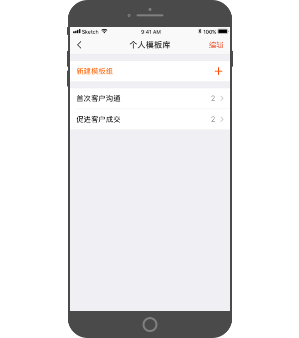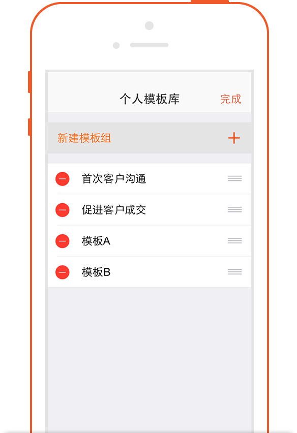 - 点击 新建模板组 后,管理员可新建个人的模板组,请参考 “客户跟进计划 - 设置公共模板 - 新建模板组”