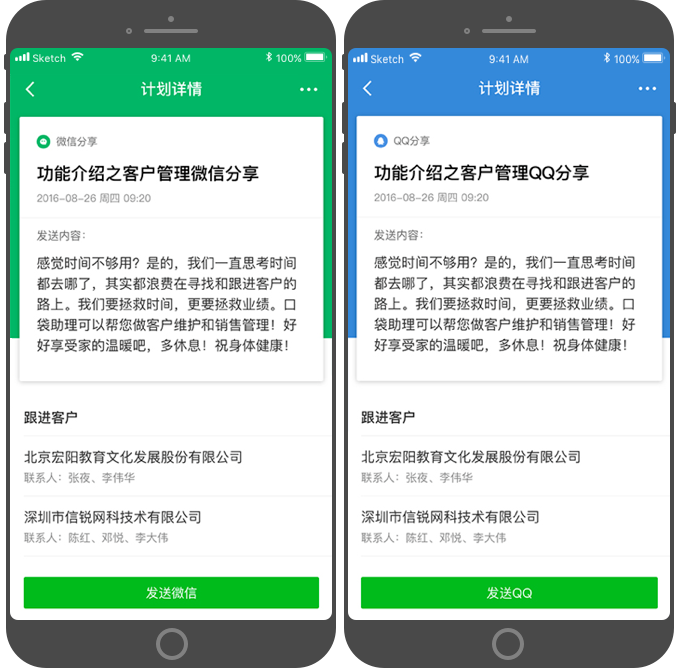 - QQ分享:员工可通过QQ分享内容跟进客户