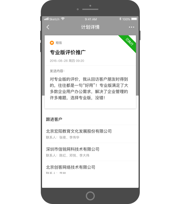 员工跟进客户后,计划详情将自动标注为“已执行”。