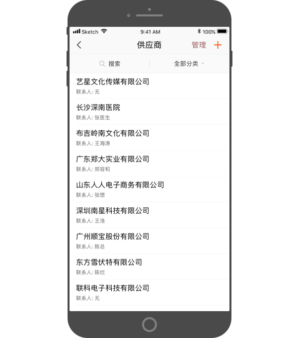 - 可以按全部供应商、单个供应商类别,查找对应的供应商