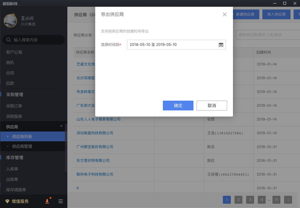 在电脑端,进入"供应商",点击右上角"导出",可在权限范围内,导出供应商。选择导出范围,导出为一份表格。