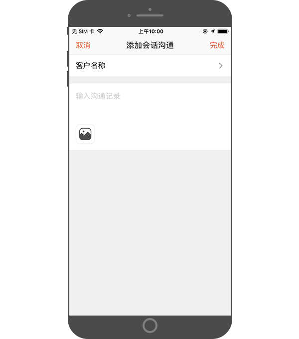 - 添加会话沟通:新建时需关联对应沟通的客户,填写沟通记录,支持上传图片,可选择下次回访提醒时间。