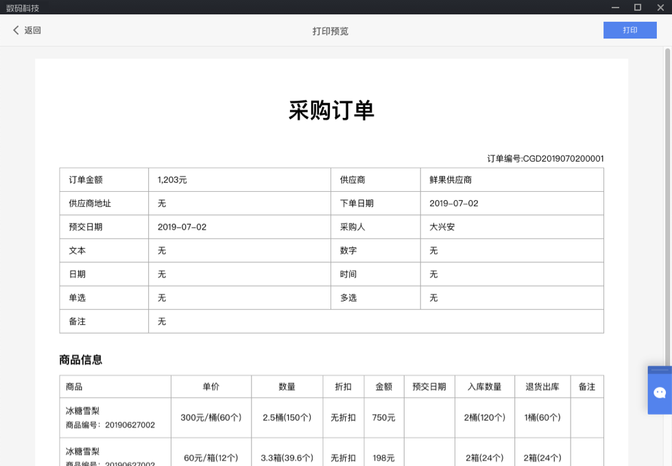在电脑端,进入"采购订单",可在权限范围内,导出和打印。