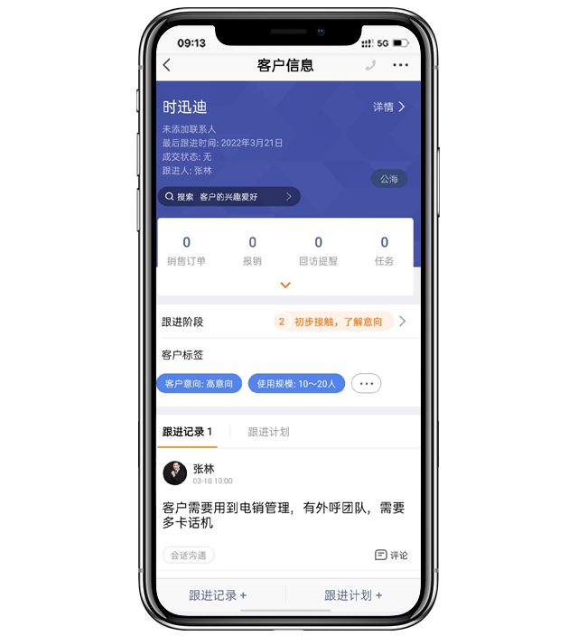 - PS:在电销版中,还会自动记录与客户通话的录音。