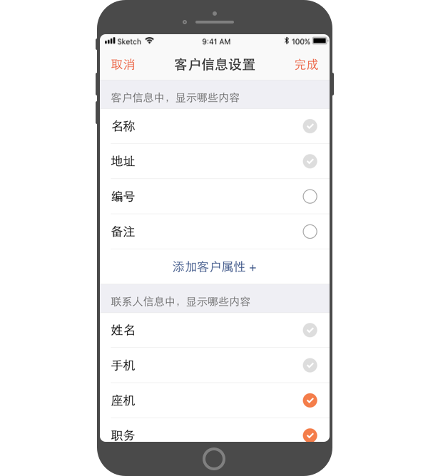 - 管理员还可自定义添加 客户及联系人 的基本属性。
