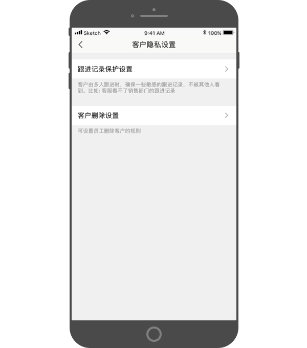 - 跟进记录保护设置:客户由多人跟进时,确保一些敏感的跟进记录,不被其他人看到。比如:设置客服人员看不了销售的跟进记录。