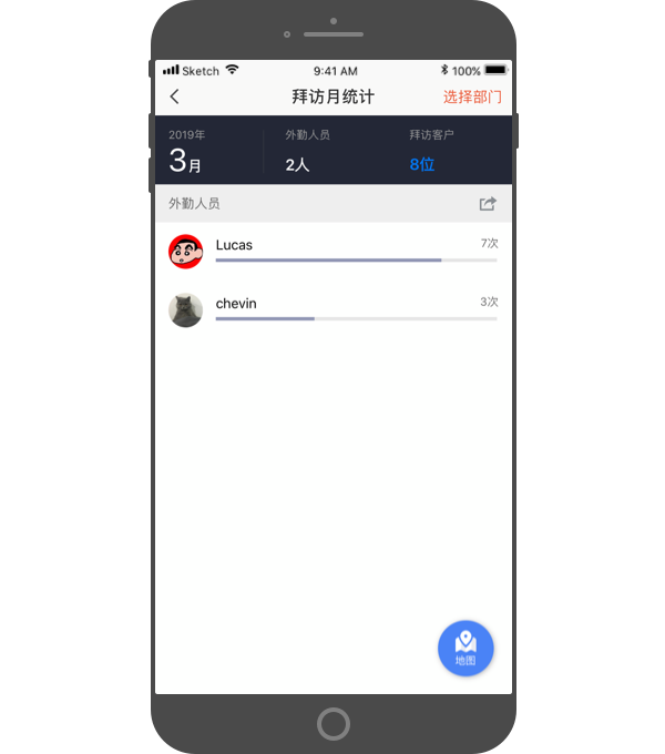 3. 拜访记录-按部门查看:
