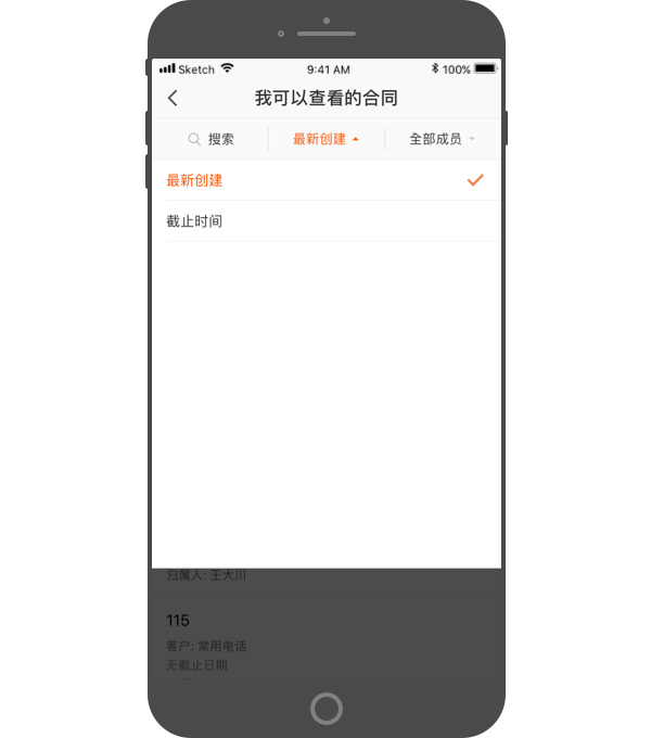 - 可查看全部成员,及单个销售人员的合同记录