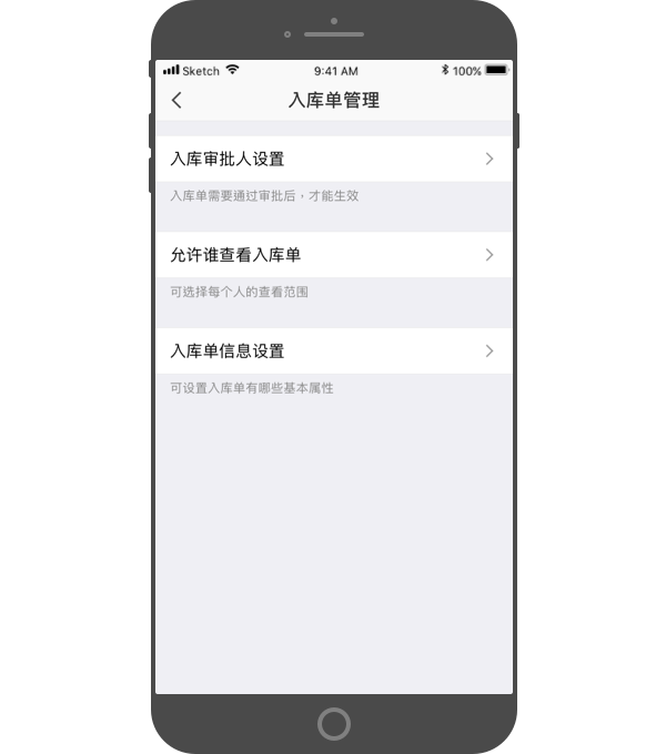 - 多个审批流程:可以为入库单设置多个审批流程。比如,某公司有3个业务部门,每个部门创建的入库单,都需要走不同的审批流程。