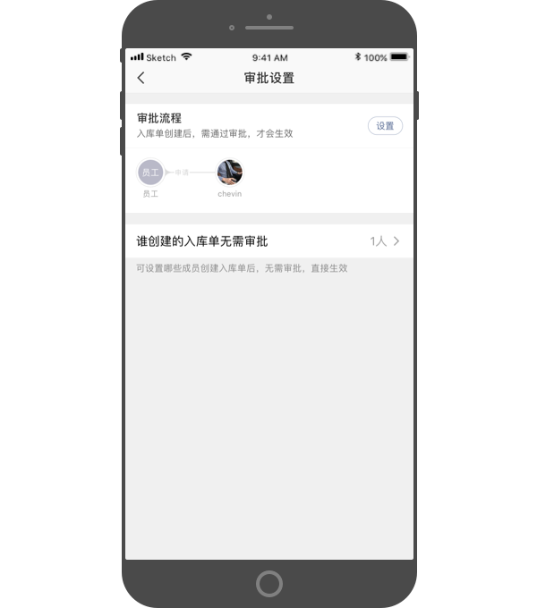 - 单个审批流程:只能为入库单,设置一个审批流程。