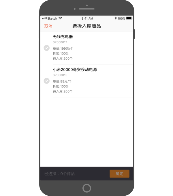 图:选择入库商品