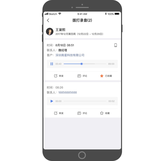 - 点击“转发”,可转发单个电话录音给其他成员。