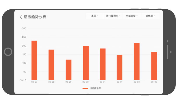 - 可按天、按周、按月,筛选查看电话统计数据。
