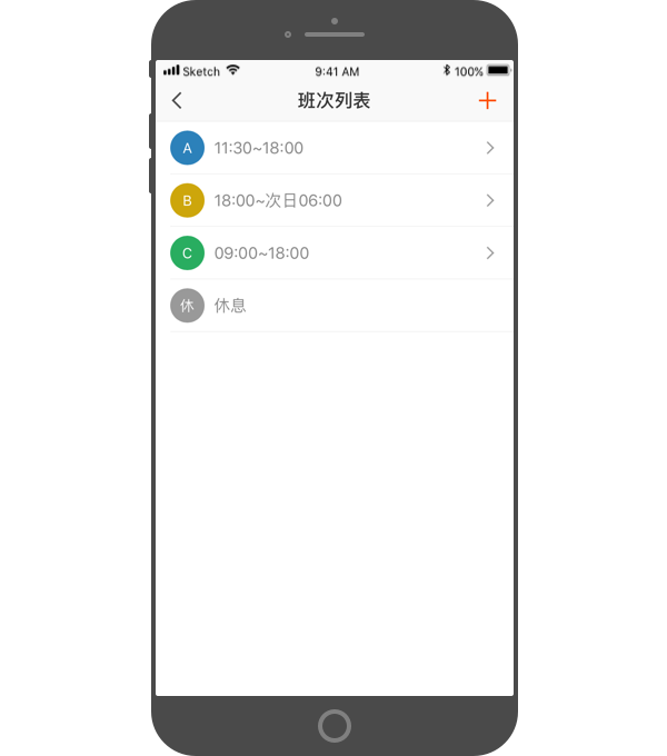 系统默认拥有 休息 班次,点击右上角“+”,可添加班次。