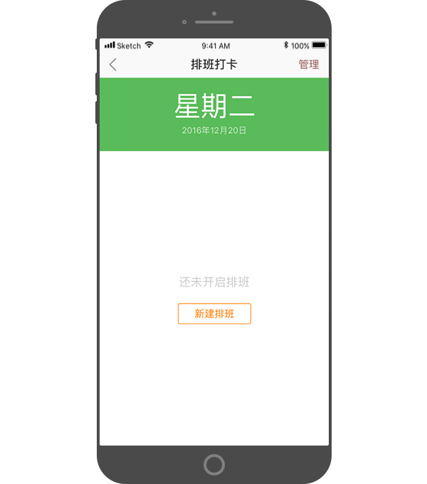 进入"排班打卡",点击右上角 "管理",可进行排班管理。