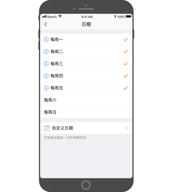 备注:点击 "i" 图标,还可以单独设置每周几的时间