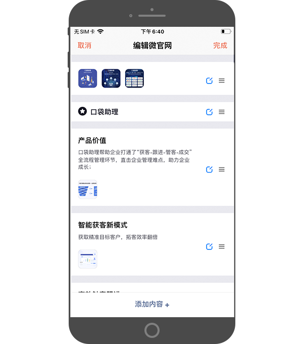 微官网内容是企业全员通用的,默认只有管理员可以编辑修改微官网内容,保证企业输出统一品牌内容。