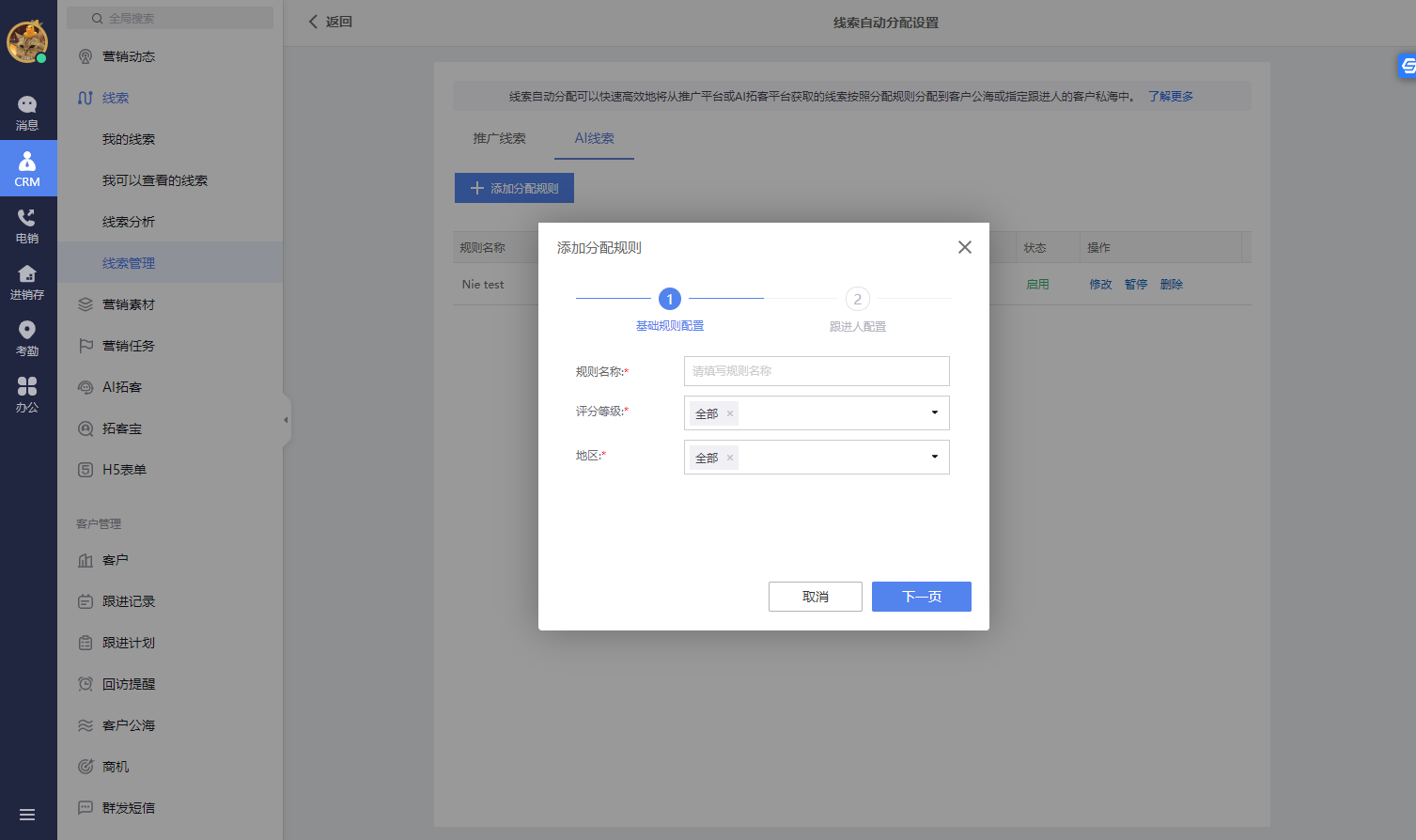图:AI线索 - 添加分配规则