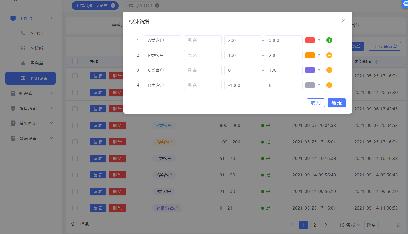 点击以下链接,了解更多配置详情:通话配置、如何筛选意向客户等;