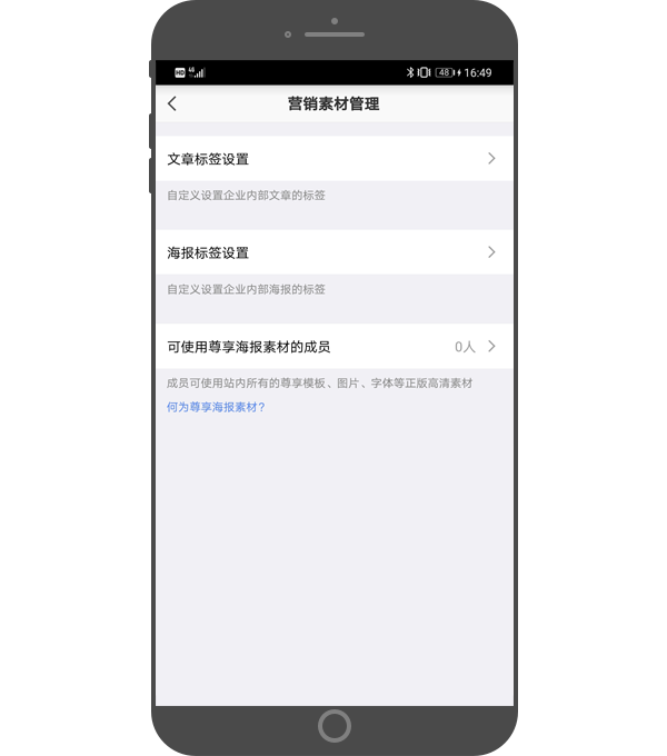 - 自定义设置企业海报的标签分类,帮助员工快速筛选营销场景所需的海报;