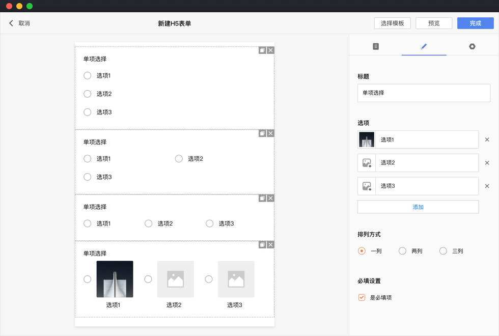 新建表单时,您也可选择系统预设的模板,快捷创建。