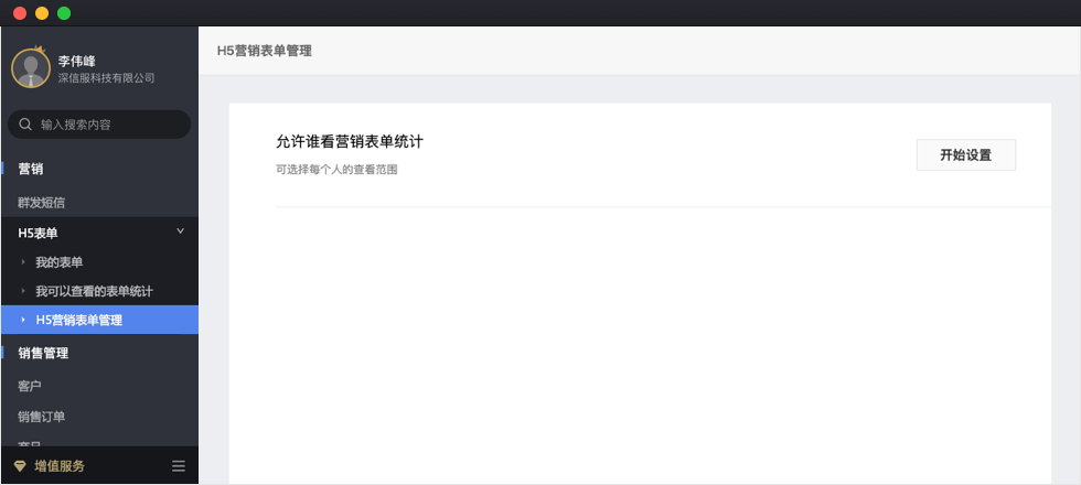 进入"应用 - H5表单",点击管理,设置H5表单的查看权限。