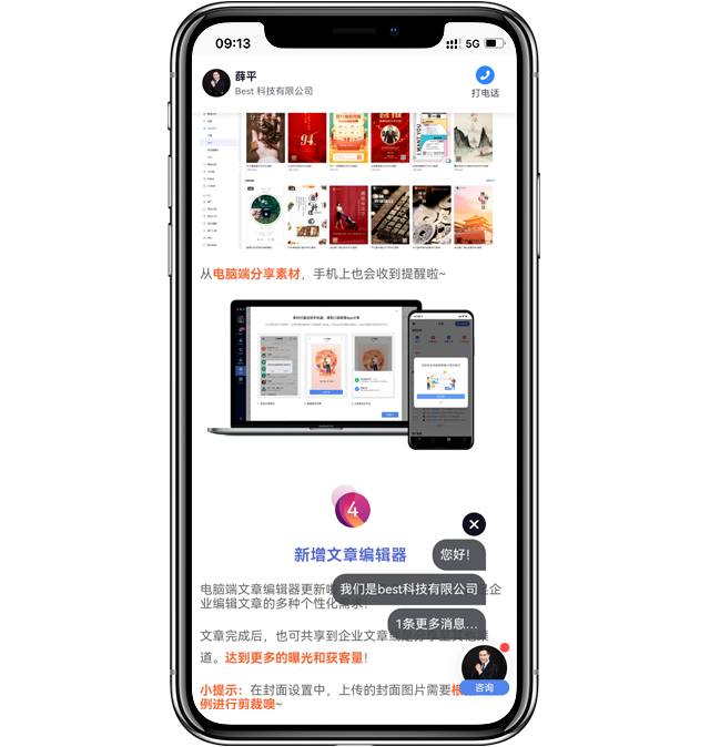 新版本中,我们加入了自动打招呼机制,企业可设置统一打招呼语,通过浏览过程中的打招呼话术,有效提升访客继续咨询的动力~